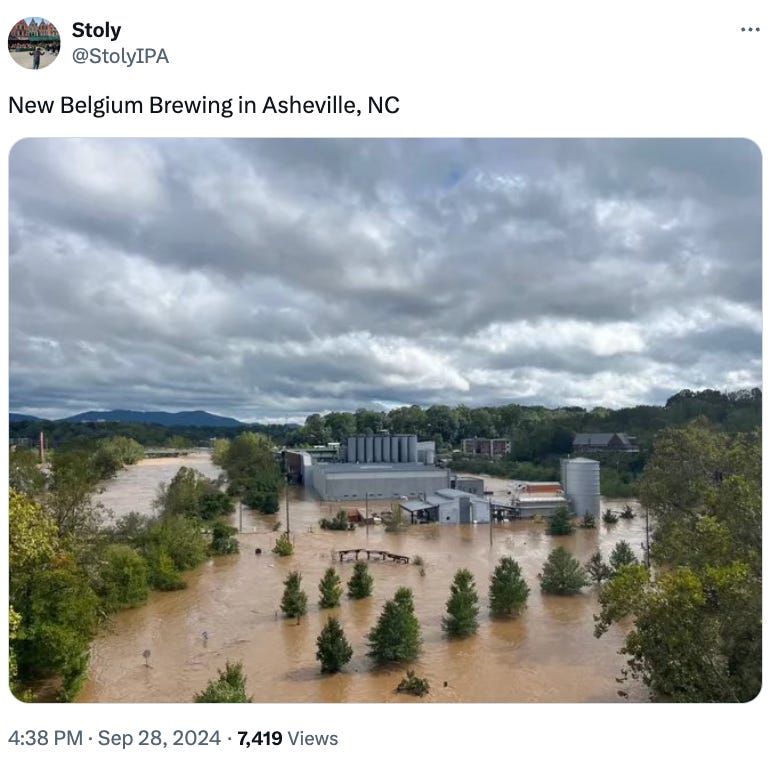 After we caught our breath, we called my wife’s sister in Waynesville. Straight to voicemail. I called her husband. Straight to voicemail. We texted. No response. We looked on the news. Pictures of downtown Waynesville underwater. The interstate that connects us to them, i40, was falling apart. The city of Asheville was unrecognizable.