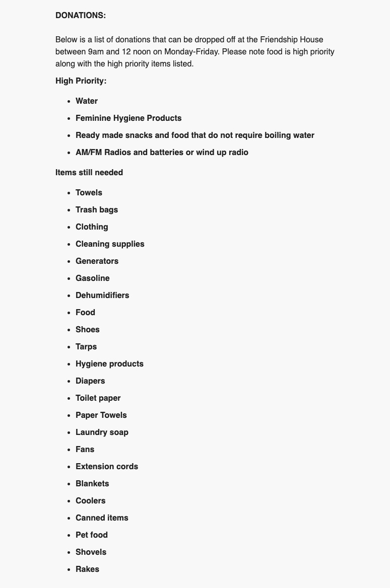 I asked John, who has lived in Waynesville his whole life, how I can help. He forwarded a link to his place of worship First United Methodist Church which is collecting donations for the larger Asheville/Waynesville community. The direct link for monetary donations (select Hurricane Helene) can be found here, if you’re so inclined.