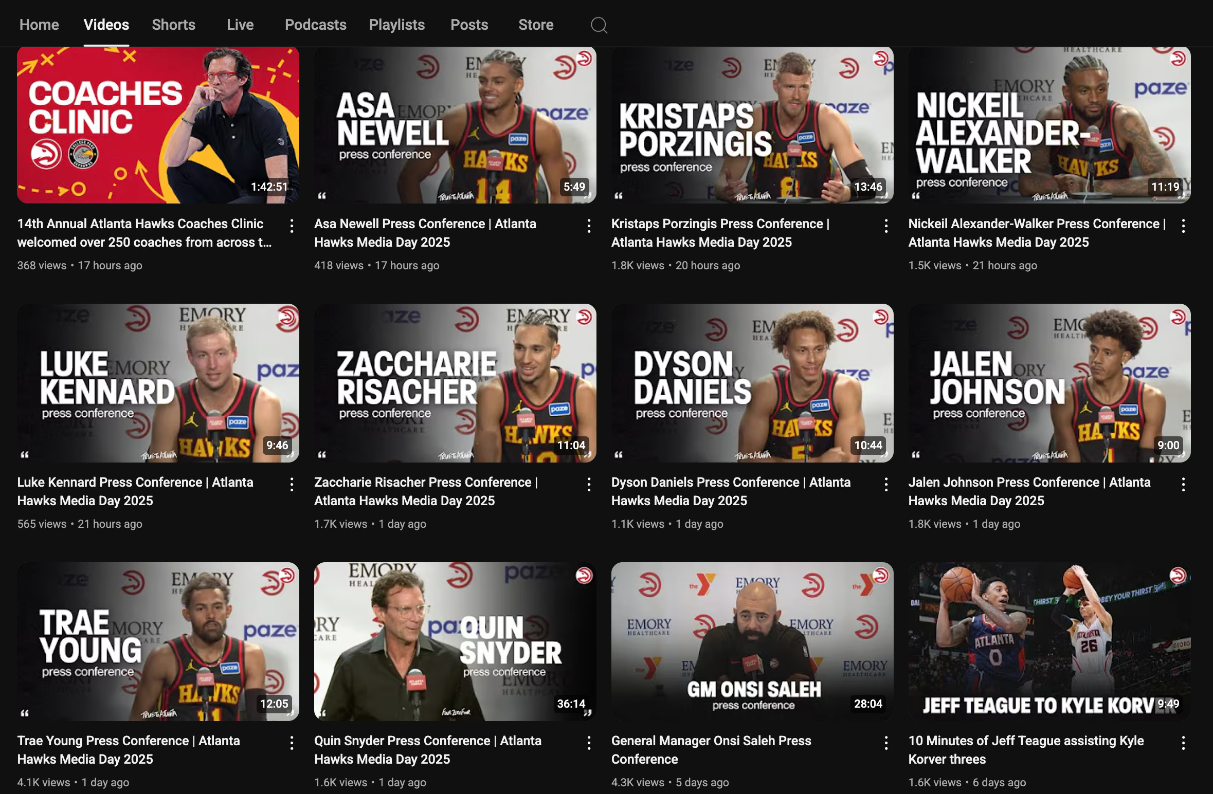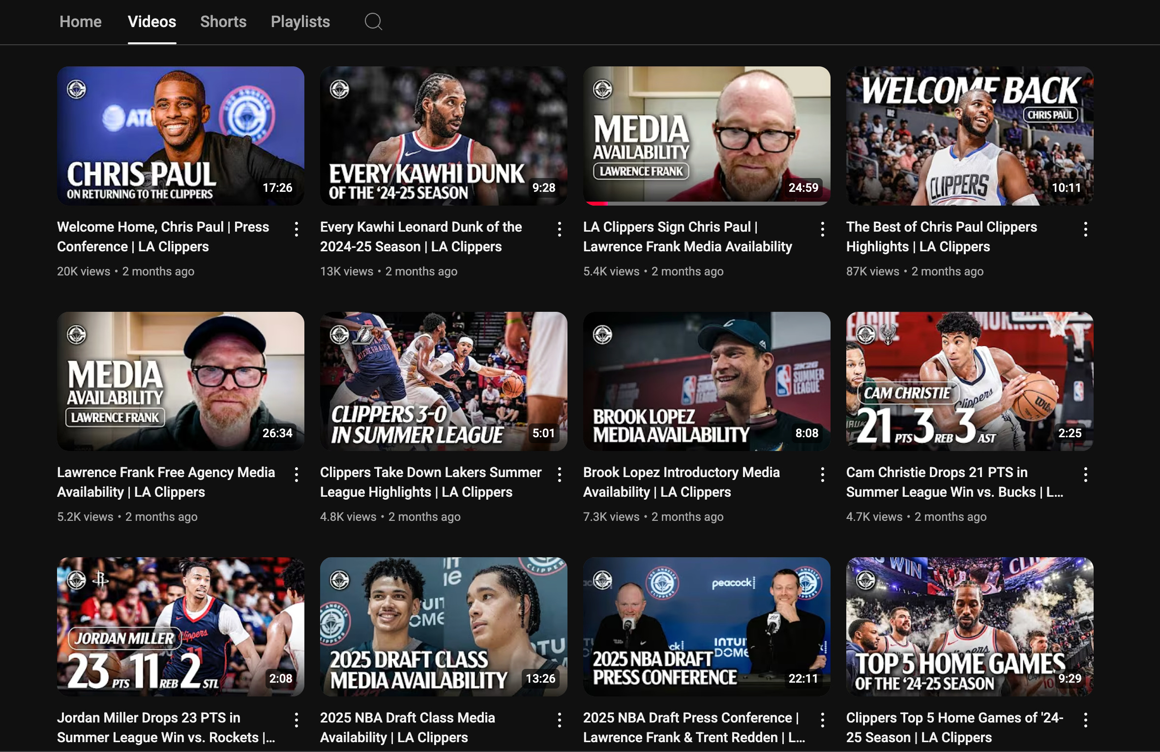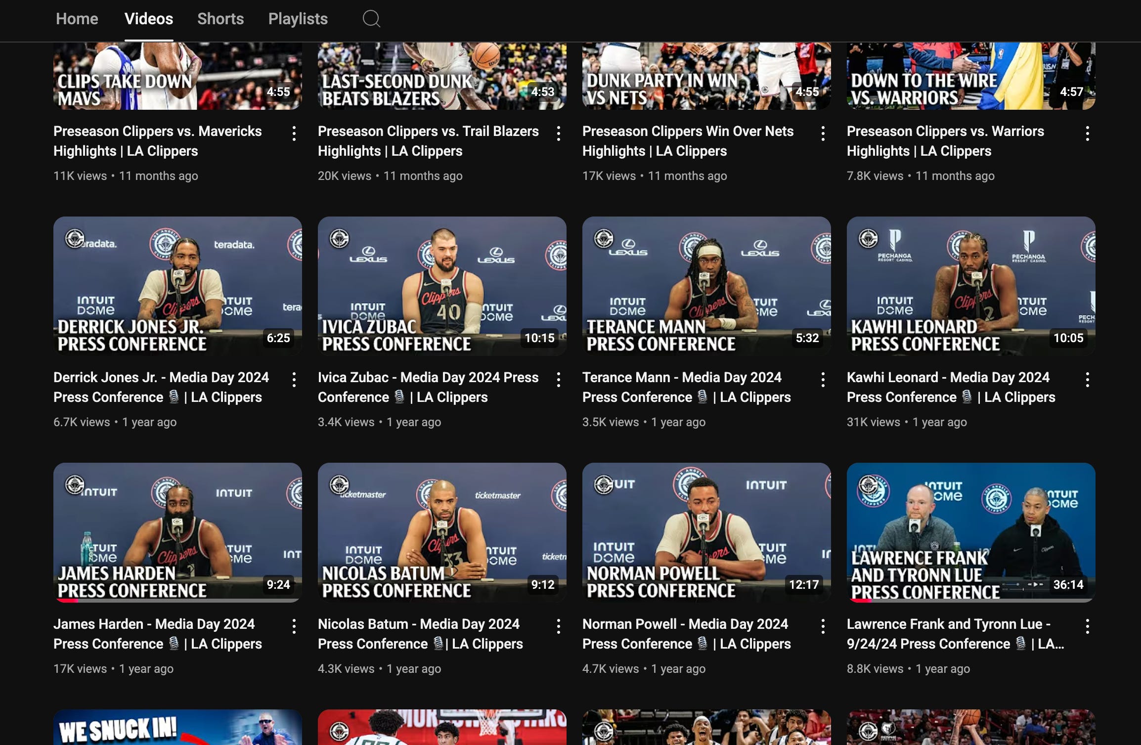 Editor’s note: In the original post I wrote that the Clippers were the only ACTIVE YouTube channel to avoid Media Day. The Houston Rockets had also not published press conferences to their YouTube account and they barely post anything so I wouldn’t consider them an active account. But I discovered that the Rockets had separately posted a live stream of their Media Day press conference with Ime Udoka and Rafael Stone, which does not live under their Video tab. The Clippers have done no such thing.