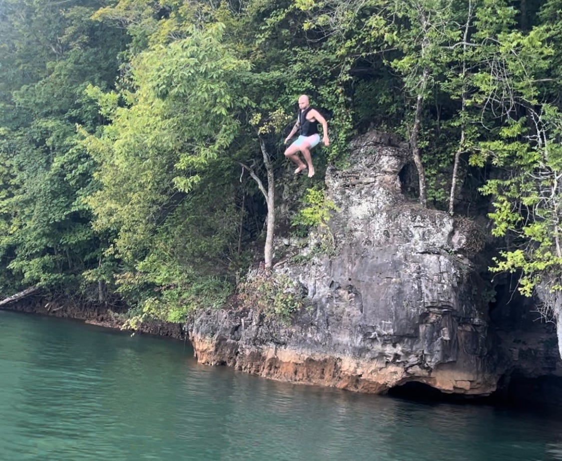 But I have a good excuse. I was on vacation. On August 8th, you could have found me drifting aimlessly on a remote Tennessee lake with my family, fulfilling a promise to my wife that I would unplug. That photo at the top? That’s me on a Norris Lake ledge last week, unplugging.