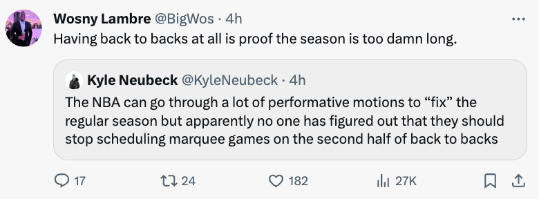 The Celtics — playing on the second-night of a back-to-back, the fifth game in seven nights, the night after an overtime game in a different time zone — got obliterated on short rest, surrendering a 25-0 run to their East foe early in the game. At halftime, Boston coach Joe Mazzulla pulled the plug and sat his starters the rest of the way — technically not a violation of the NBA’s player participation policy since all the key players played.