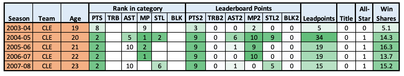 The source material: LeBron’s first five seasons 2003-04 to 2007-08