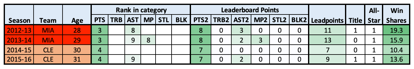 The source material: LeBron’s four seasons 2012-13 to 2015-16