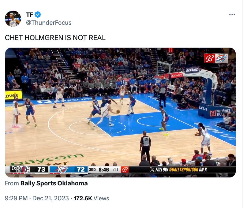 Chet Holmgren took a page out of Tracy McGrady’s book on Thursday night. And it was glorious.