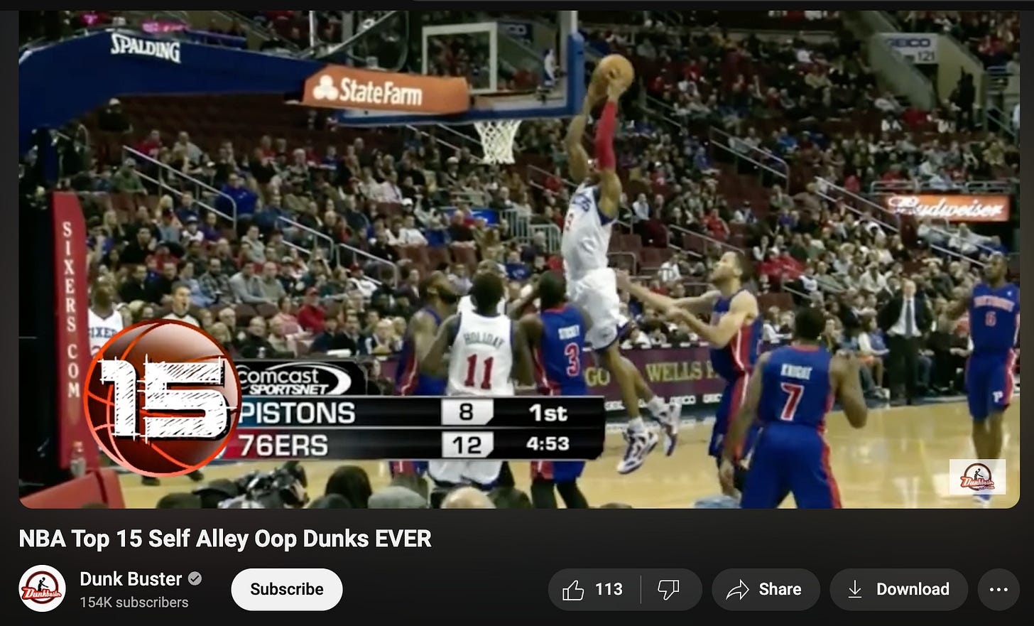 I stumbled upon a YouTube clip ranking the 15 self alley-oop dunks EVER.