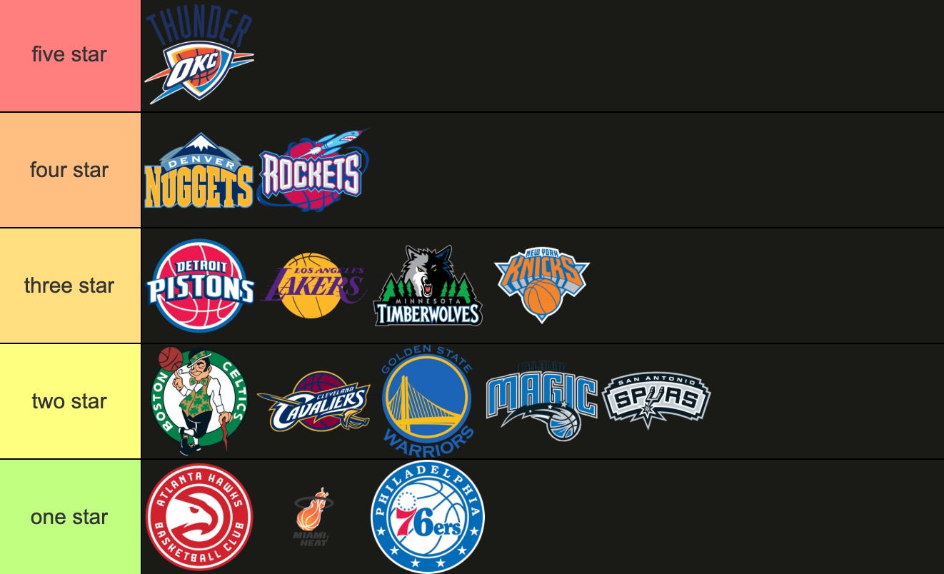 A reminder that teams are listed within each tier in alphabetical order, not in order of strength. Here’s a quick rundown of each tier: